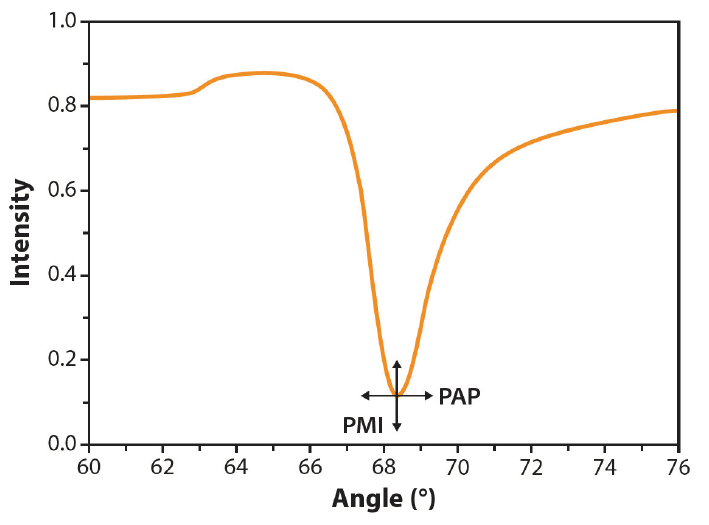 圖1:MP-SPR儀器可以連續(xù)測(cè)量全SPR曲線,并可以實(shí)時(shí)跟蹤多個(gè)參數(shù),包括峰值角位置信號(hào)(PAP)和峰值最小強(qiáng)度(PMI)。