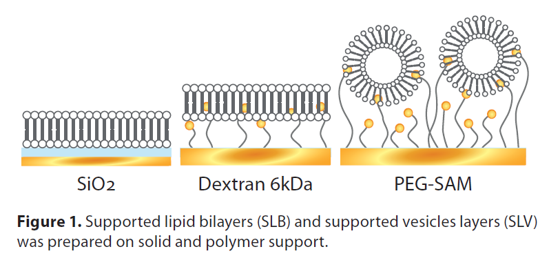 傳統(tǒng)的支持脂質(zhì)雙分子層(SLB)或囊泡層(SLV)是在固體載體上制備的,如SiO2或金(Au),但層在通過空氣-水界面過渡時(shí)往往不穩(wěn)定。聚合物載體可以提高所形成的脂質(zhì)層的穩(wěn)定性。