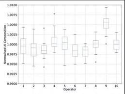 我們的方法提供了一種更好的替代方案,即調(diào)整電子束的穿透深度,精確有效地激發(fā)掩埋的鋁鎵氮層。通過(guò)使用嵌套量具對(duì)比研究,具有和不具有頂部 p 型氮化鎵層的等效晶片,證明了我們技術(shù)的準(zhǔn)確性和可重復(fù)性(參見(jiàn)圖 4)。100 多次的重復(fù)測(cè)量,歸一化標(biāo)準(zhǔn)偏差低于 ±0.25%,說(shuō)明這項(xiàng)研究有很強(qiáng)的測(cè)量可重復(fù)性。當(dāng)假設(shè)規(guī)格極限為 14%(目標(biāo)為 ±7%)時(shí),記錄的每個(gè)樣本的量具方差低于 10%。