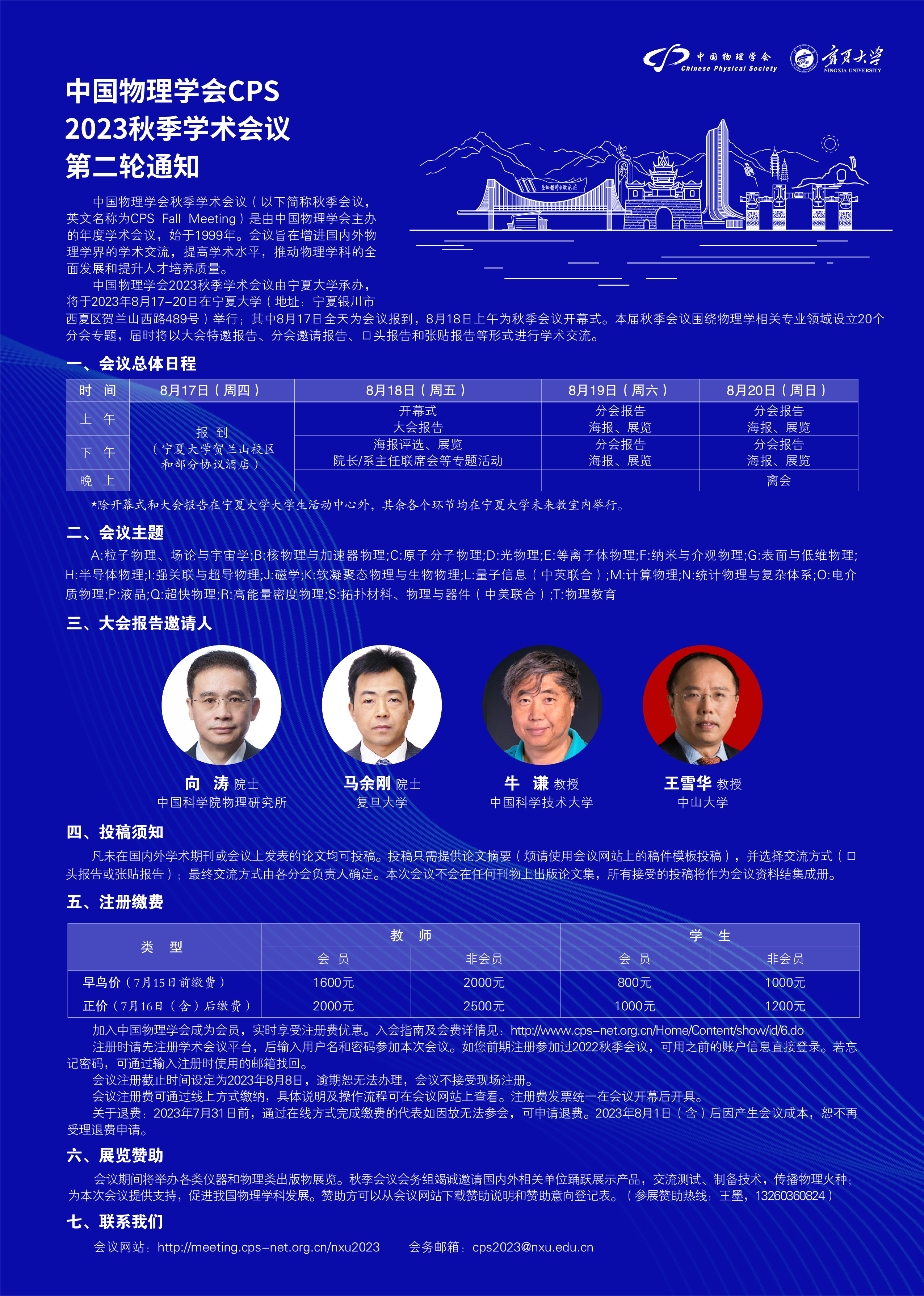 為加強(qiáng)國內(nèi)外物理學(xué)界的學(xué)術(shù)交流,提高學(xué)術(shù)水平,推動(dòng)物理學(xué)科的全面發(fā)展和提升人才培養(yǎng)質(zhì)量,中國物理學(xué)會(huì)2023秋季學(xué)術(shù)會(huì)議將由寧夏大學(xué)承辦,定于2023年8月17日至20日在寧夏大學(xué)舉行。
