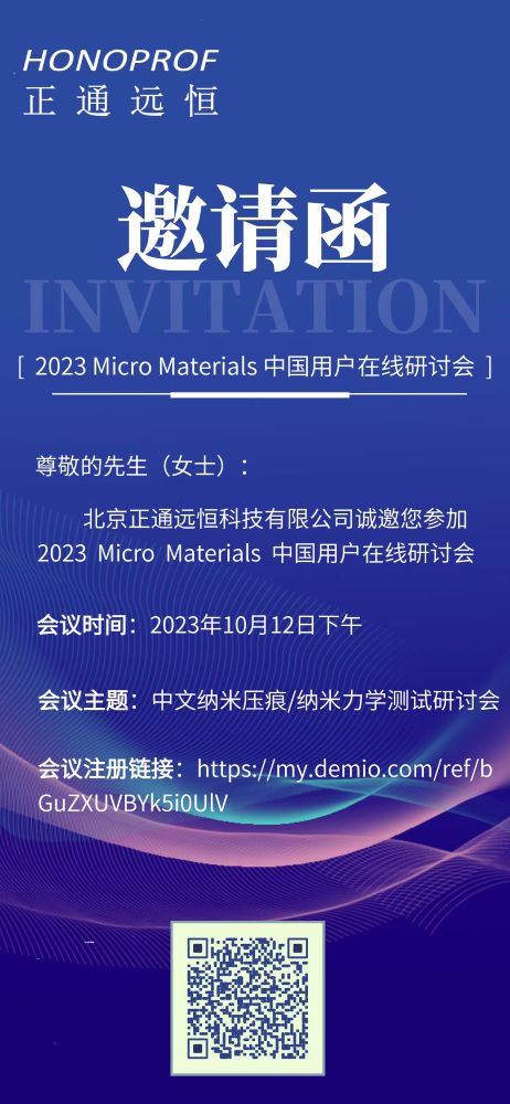 為了讓Micro Materials中國用戶了解納米壓痕及納米力學測試技術的最新進展,Micro Materials聯合北京正通遠恒于2023年10月12日為客戶舉辦在線研討會。 我們邀請您聆聽該領域一些知識淵博的專家的演講,幫助您開展研究并充分利用MML儀器。 Micro Materials 將會在本次研討會中向各位用戶老師介紹我們最新的隨機沖擊技術以及相關的應用。期待您的參會!
