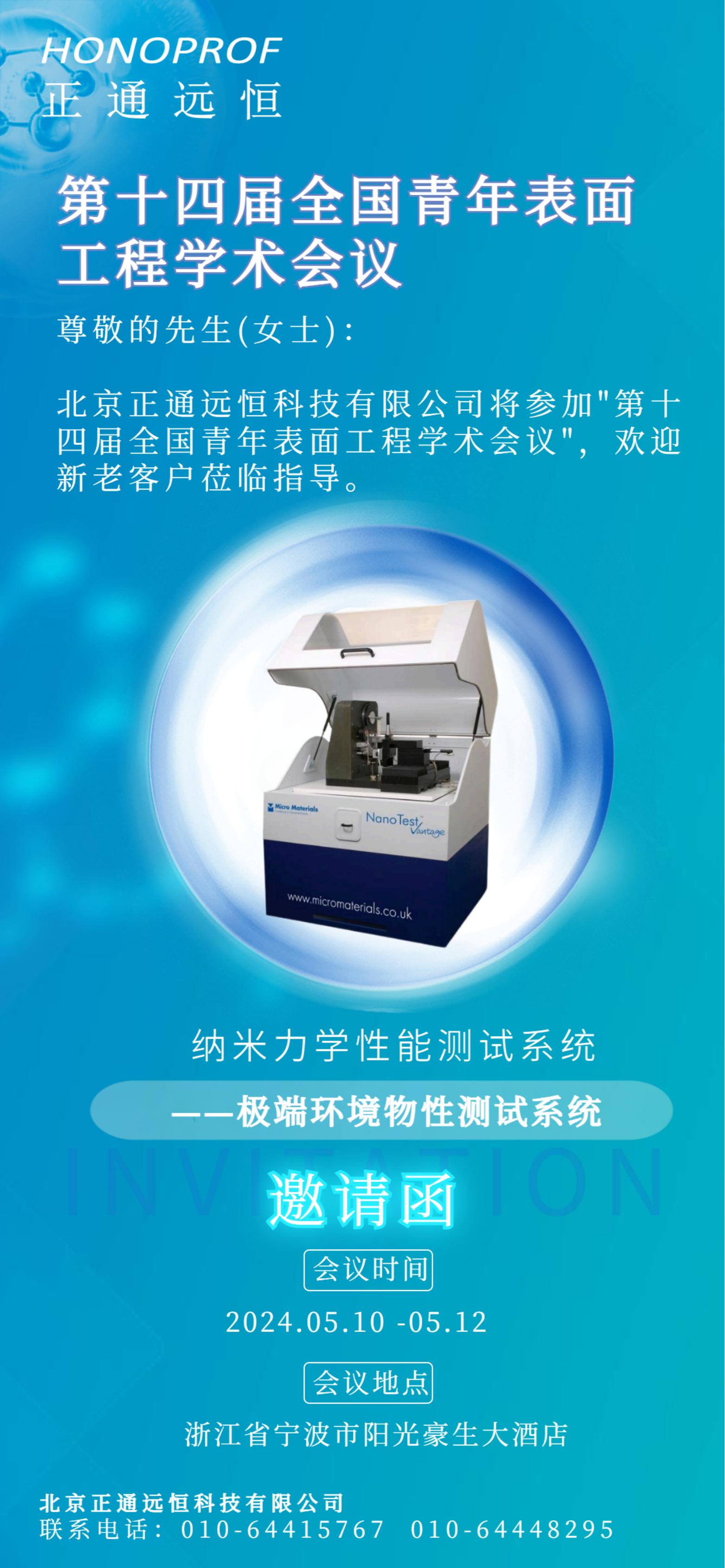 第十四屆全國青年表面工程學(xué)術(shù)會議將于2024年5月10-12日在寧波陽光豪生大酒店召開。本次大會的主題是“表面工程的低碳、智能、創(chuàng)新發(fā)展”,旨在研討和交流面向低碳綠色制造和智能制造發(fā)展的表面工程前沿技術(shù)和熱點(diǎn)問題,促進(jìn)我國表面工程領(lǐng)域的持續(xù)創(chuàng)新。北京正通遠(yuǎn)恒攜納米力學(xué)性能測試系統(tǒng)參展,歡迎廣大新老客戶蒞臨指導(dǎo)。