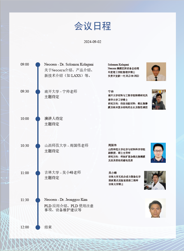 為了促進用戶之間的技術(shù)交流,研討國內(nèi)外最新研究應(yīng)用進展,Neocera攜同北京正通遠恒科技有限公司于2024年9月2日舉辦用戶線上大會。屆時,我們將特別邀請行業(yè)專家及用戶代表參與本次線上會議,把最新的科研成果和技術(shù)呈現(xiàn)給大家。