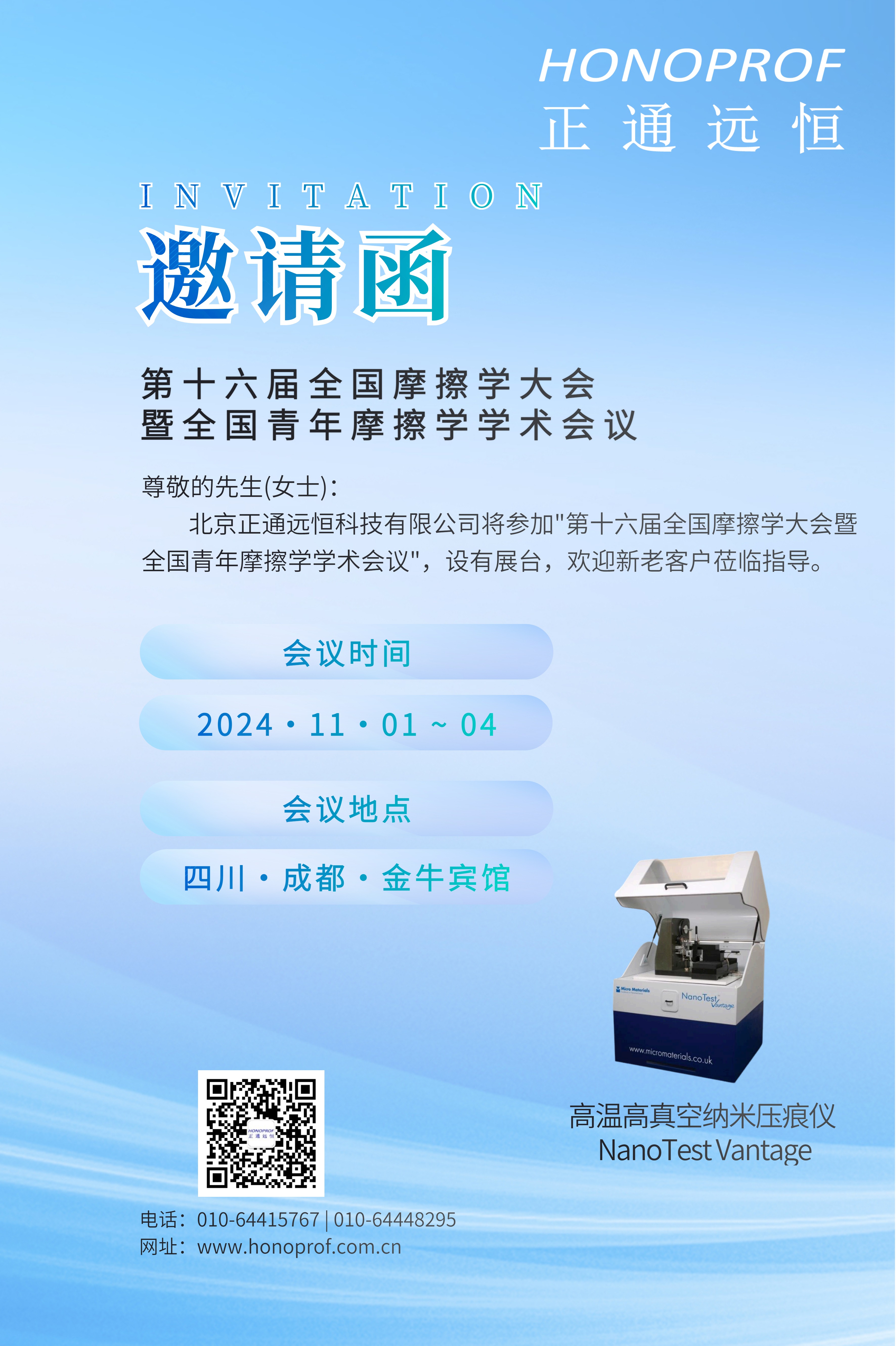 北京正通遠(yuǎn)恒科技有限公司將于2024年11月1日-4日參加在四川省成都市金牛區(qū)金泉路2號(金牛賓館)舉辦的"第十六屆全國摩擦學(xué)大會暨全國青年摩擦學(xué)學(xué)術(shù)會議",本次會議是在中國西部召開的又一次中國摩擦學(xué)界的盛會,是中國機(jī)械工程學(xué)會摩擦學(xué)分會響應(yīng)國家“新西部大開發(fā)”和“成渝地區(qū)雙城經(jīng)濟(jì)圈建設(shè)”的具體實踐,是加快發(fā)展“新質(zhì)生產(chǎn)力”的新作為。會議的召開將會加強(qiáng)全國摩擦學(xué)者的深入交流,進(jìn)一步推動摩擦學(xué)創(chuàng)新成果轉(zhuǎn)換,為中國制造新質(zhì)生產(chǎn)力發(fā)展添力賦能、提供堅實的科技支撐。北京正通遠(yuǎn)恒出席此次盛會并設(shè)有展臺,歡迎新老客戶蒞臨指導(dǎo)!