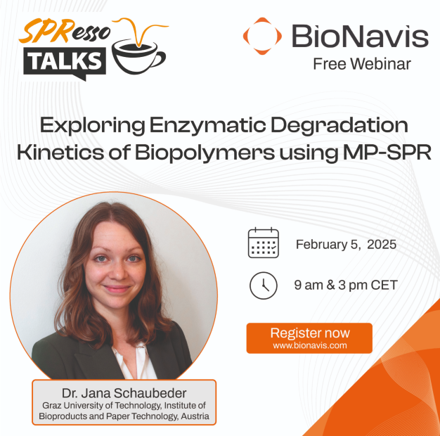 在本次網(wǎng)絡(luò)研討會(huì)中,BioNavis將探討多相酶表面反應(yīng)的動(dòng)力學(xué),以及如何用MP-SPR研究它們,哪些模型適合模擬,以及除了基本動(dòng)力學(xué)參數(shù)之外還可以獲得其他相關(guān)信息。
