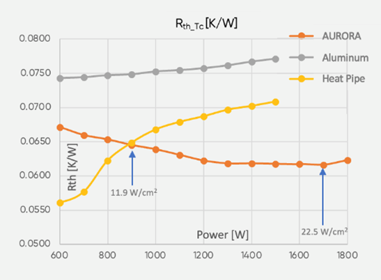 2、對于更高功率水平和密度的半導(dǎo)體模塊,AURORA比其他技術(shù)散熱性能更好。