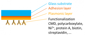 功能化傳感器,金涂層表面的生化功能化。CMD-3D、 CMD-2D、生物素、親和素、 蛋白A