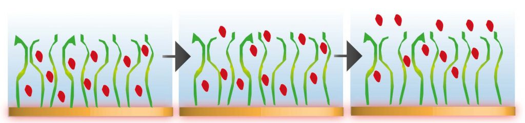 在納米等離子體光譜技術(NPS)中,納米結(jié)構傳感器的局域表面等離激元共振技術(LSPR)用于探測鄰近傳感器表面(<30 nm)的折射率(與光/干質(zhì)量有關)的微小變化。它能夠極其靈敏地檢測發(fā)生在傳感器/樣品界面處的變化過程。